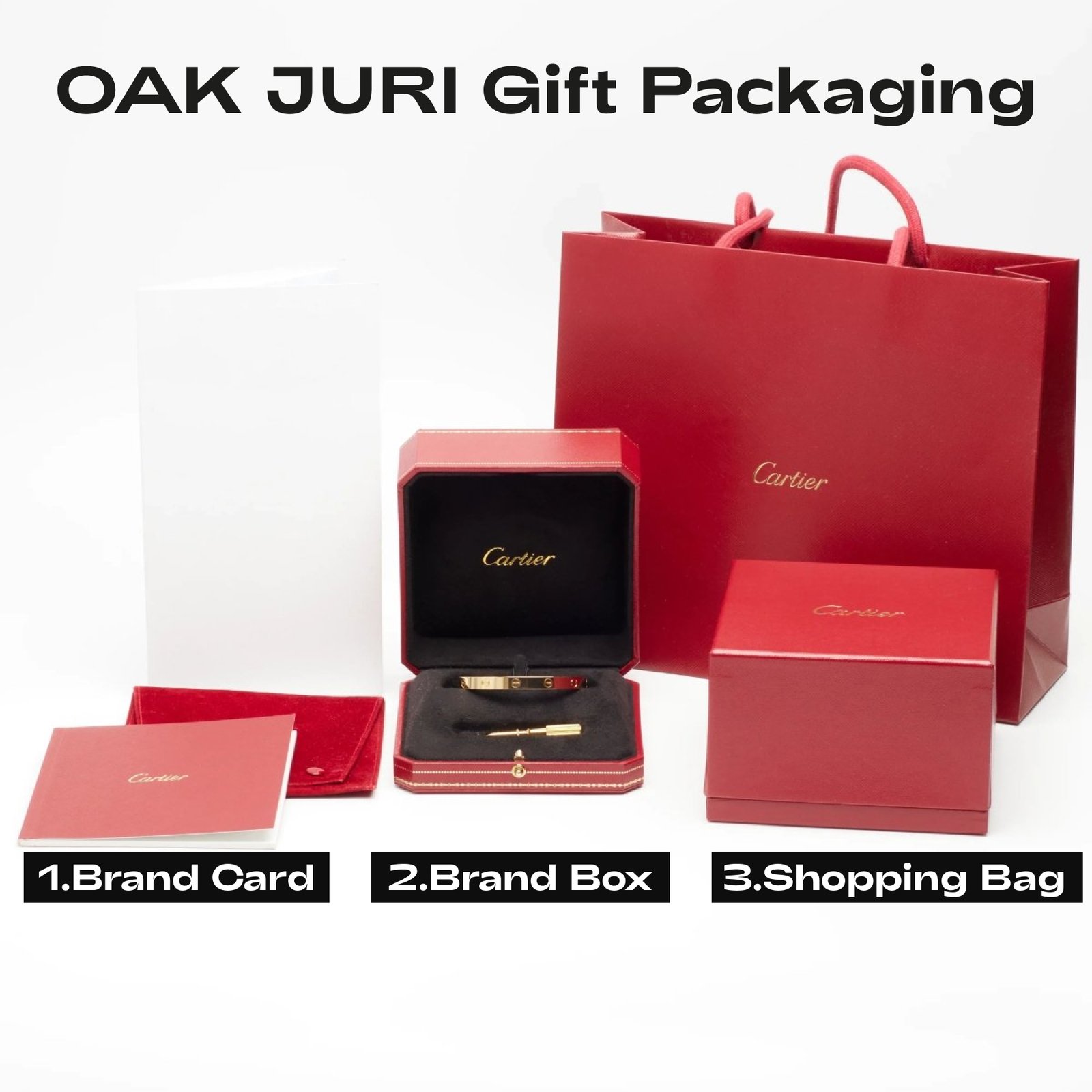 *Note: The box shown is a sample from Cartier brand and bracelet. Packaging may vary by brand.