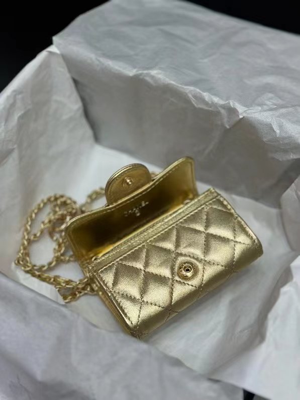 Chanel Gold Metallic Calfskin Quilted Flap Chain Waist Bag