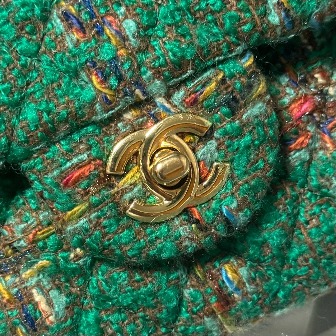 Chanel Wool Tweed Green Classic Flag Bag Medium – Bag