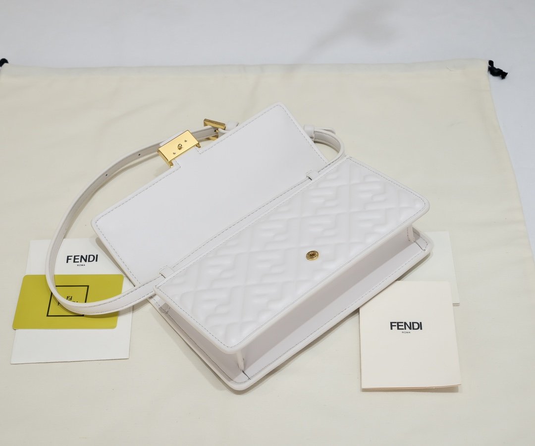 Fendi Baguette Wallet With Chain – White