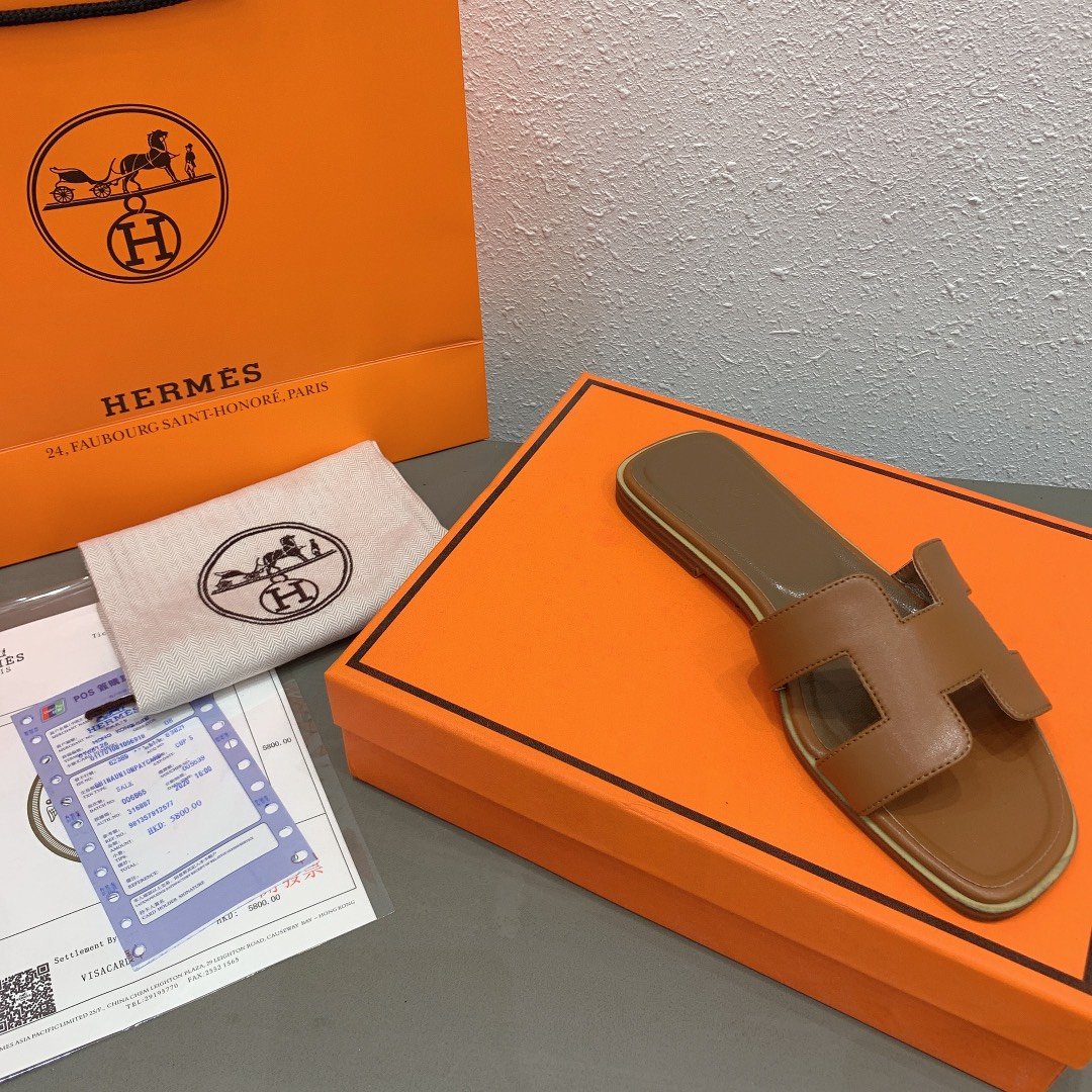 Hermes Oran Sandal Leather Sandals Slippers – Shoes