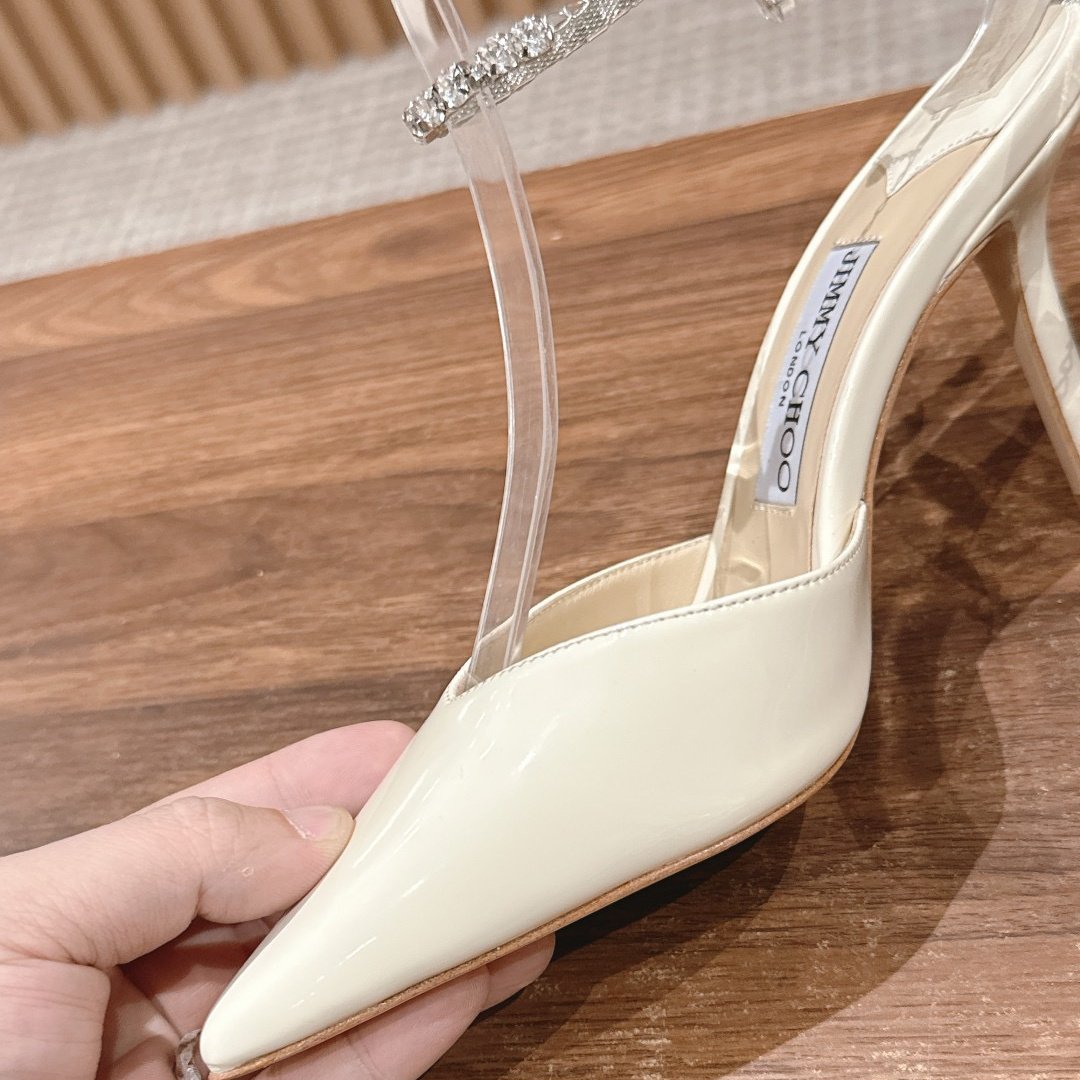JIMMY CHOO White with Crystal Embellishmen Pumps- Shoes