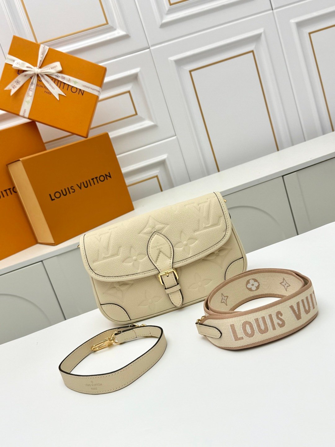 Louis Vuitton LV Empreinte Monogram Leather Diane Creme Beige -bag