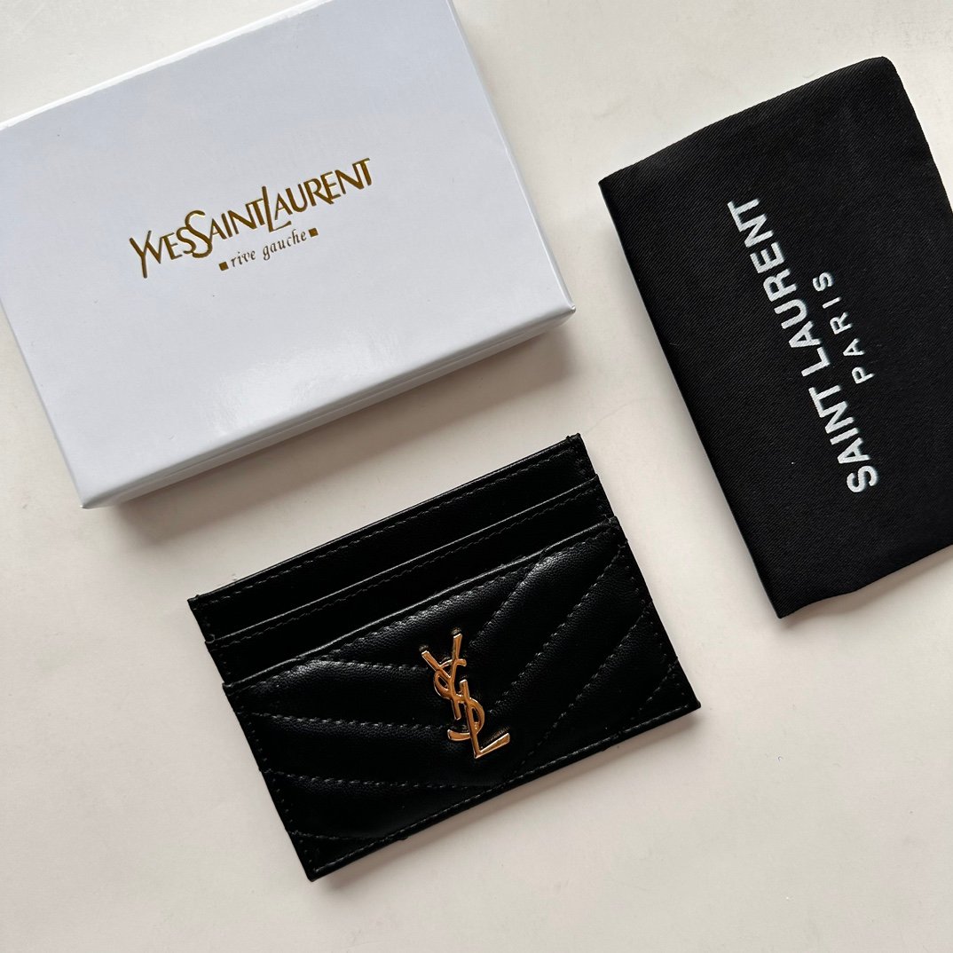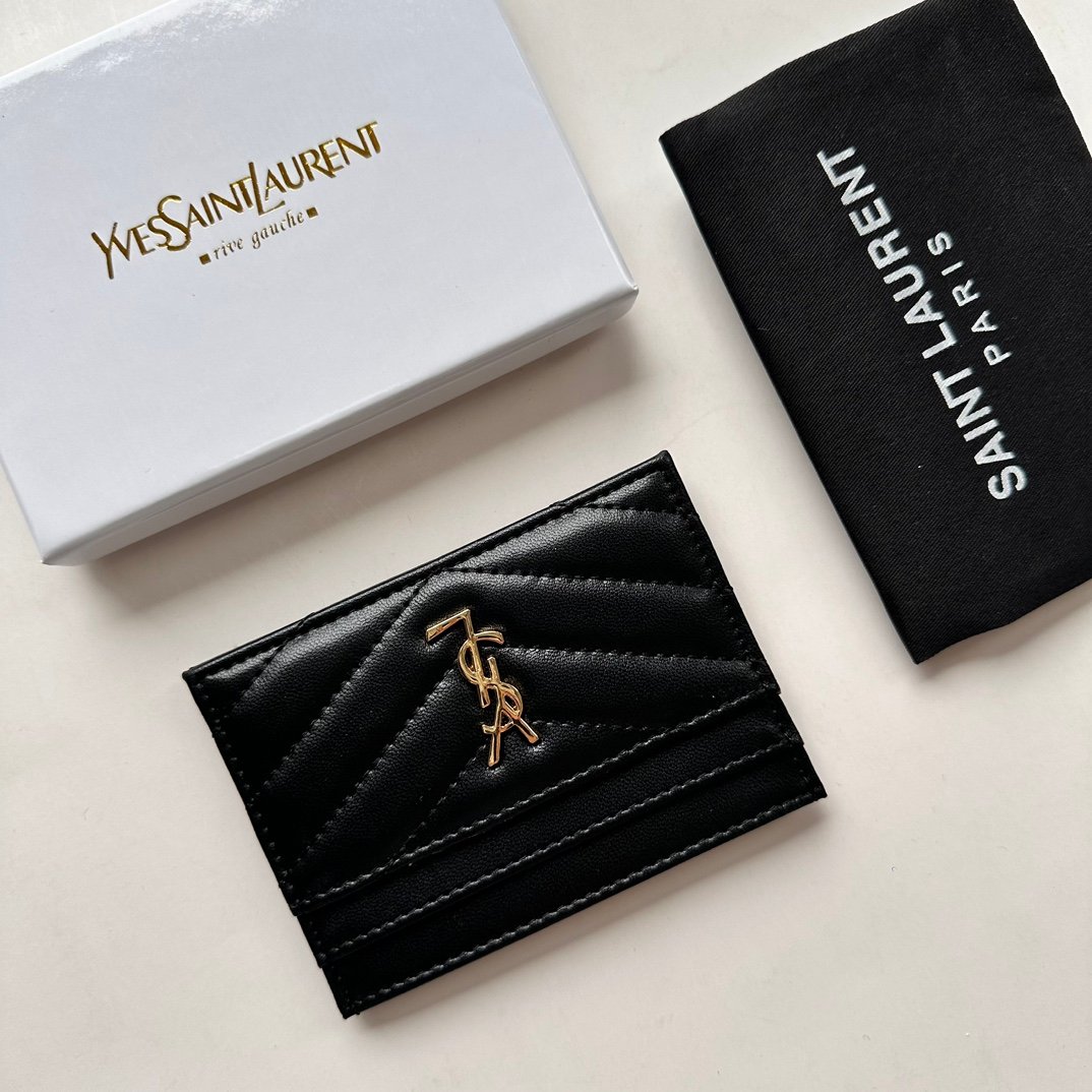 Saint Laurent CASSANDRE MATELASSÉ card case in lambskin -Black and Gold Wallet